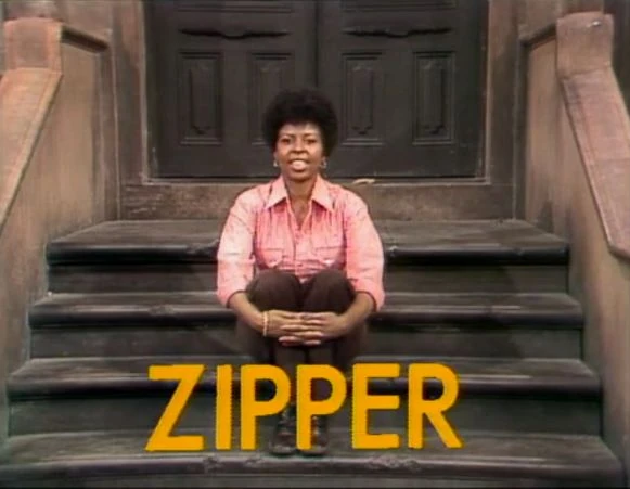 SCENE 5 | Susan says, "Z β¦ zipper." The zipper animation transition (First: Episode 0291) reveals Mr. Hooper zipping up his jacket. The same setup occurs with Oscar introducing Gordon unzipping his coat, and Big Bird revealing Susan once more. |
