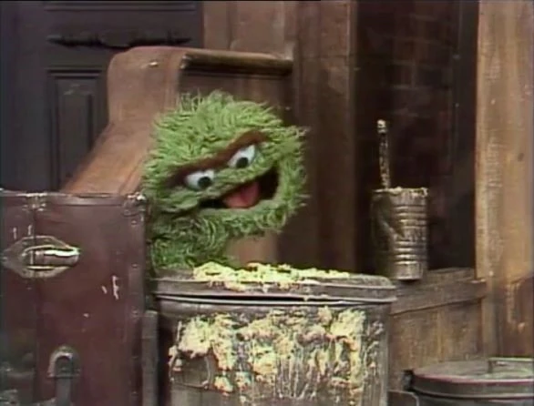 SCENE 2 cont'd | Oscar has finished cleaning his can. Susan and Mr. Hooper pass by, and Susan happily lets Oscar know that the sticky stuff is no longer there. Oscar has a fit. |