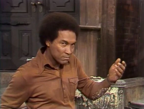 CLOSING SIGNS | Mr. Hooper holds the Sesame Street sign, and Gordon and Susan hold the Children's Television Workshop sign. |