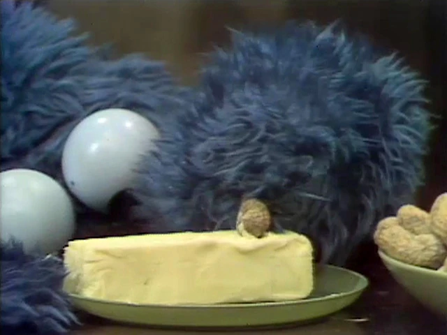 SCENE 7 | Cookie acknowledges the interesting but complicated way of making peanut butter, but proceeds to show the best way to make it by shoving a stick of butter and a counter full of peanuts all into his mouth, and chewing it all up together. |