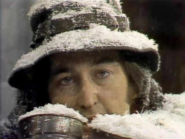 SCENE 4 | Bob continues to wait for Oscar's life-and-death message, covered in more heavy snow while holding a bunch of junk Oscar has displaced from his can when looking for the note. |