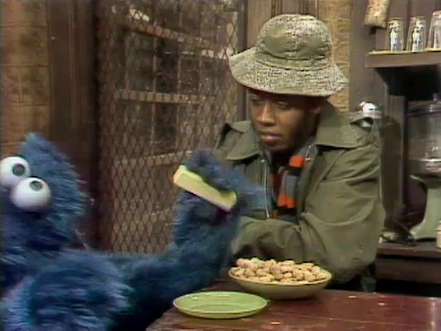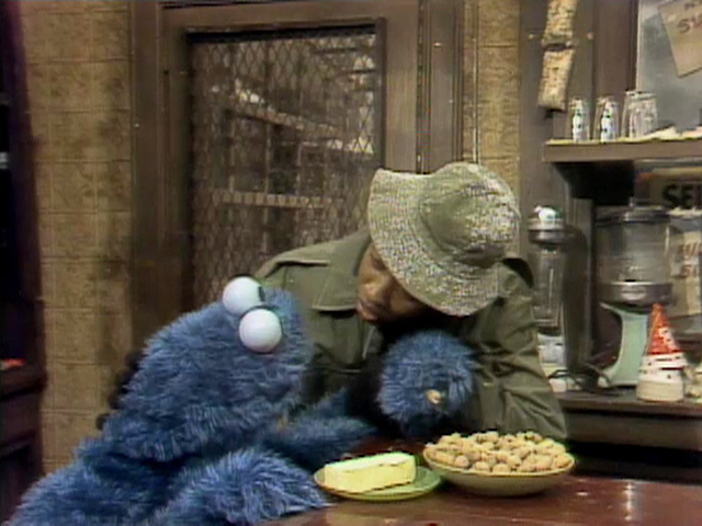 SCENE 6 | Cookie Monster is spreading butter on a peanut in Hooper's Store, but he's told that's not the way to make peanut butter. cut from the Max version |