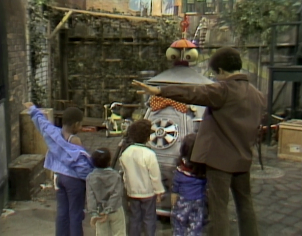 Gordon and the kids play "Sam Says" with Sam the Robot. Maria announces the sponsors (E, Z, and 12) and the credits roll. This scene, from episode 0590, replaces the original closing of this episode. |