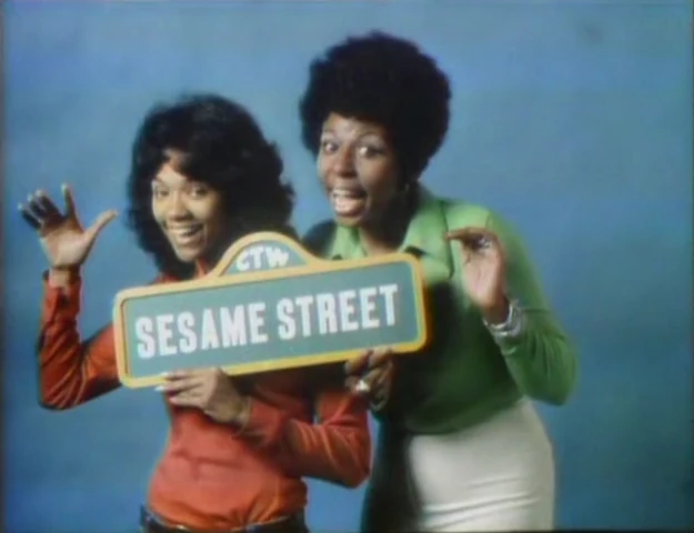 CLOSING SIGNS | Maria and Susan hold the Sesame Street sign, while Mr. Hooper and David hold the CTW sign. cut from the Max version |