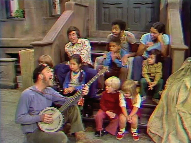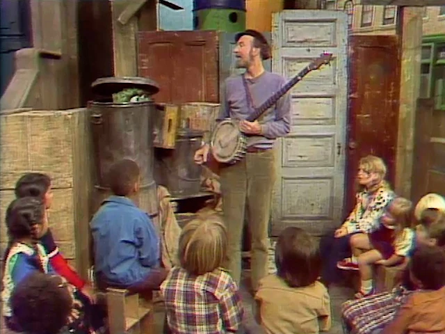 SCENE 1 | Maria and David introduce Pete Seeger, who is about to chop a log. Big Bird thinks itβll tire him out, but Pete tells them to join him as he sings "Didn't Old John" while he chops. |