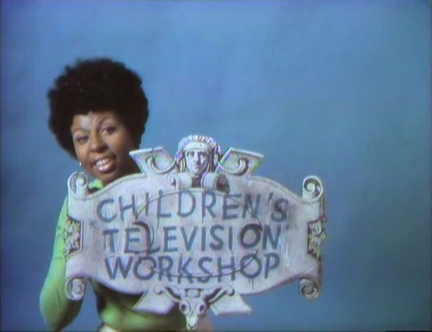 CLOSING SIGNS | David holds the Sesame Street sign, and Susan holds the Children's Television Workshop sign. |