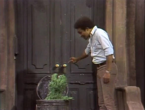 SCENE 3 | Oscar has set up his can at the top of the steps in front of 123 Sesame Street. Gordon bumps into him, and warns Oscar that he could've tripped and fallen down the stairs. Oscar sees no problem with this until Gordon points out that the same thing could happen to him and his can if he stays there. Oscar agrees to move somewhere else. |