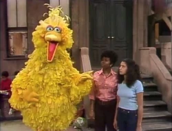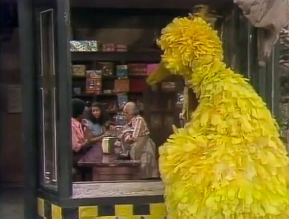 SCENE 3 | Big Bird wants to teach subtraction, so he spies three smart people in Hooper's Store who could help him - Maria, Susan and Mr. Hooper. Unfortunately, Susan exits, making two smart people, and then Maria exits, leaving one. Mr. Hooper comes outside and asks Big Bird to watch the store for him, which leaves none. |