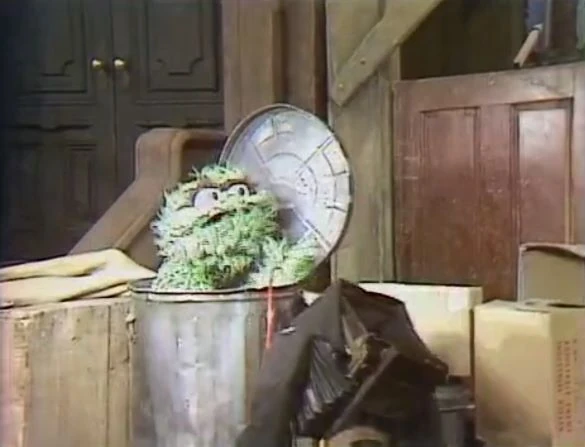 SCENE 5 | Oscar attempts to get a self-portrait while sitting inside his trash can, but ends up breaking the camera when he tries to pull it closer. He frets at his mistake as Maria announces the sponsors. |