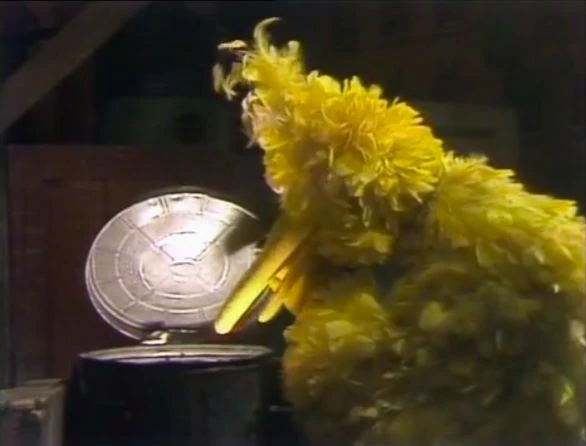 SCENE 6 | At night, Big Bird and Luis go home after having dinner with Susan and Gordon. They are glad they finally got rid of the piano, but then they hear the piano playing the Sesame Street Theme off-key, and wonder where it’s coming from. They split up to look for it, and Big Bird lifts the lid of Oscar's trash can to find Oscar playing and singing a rotten version of the theme. Bob announces the sponsors. |
