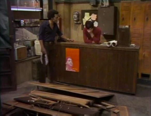 SCENE 5 | Inside the Fix-it Shop, Big Bird has put most of the piano back together with bandages and bubble gum, understanding that Luis knows how to take care of the rest. Gordon and Luis are happy to see that the piano is now off the street, assuming the trash collectors have picked it up. They are flabbergasted when they find it shoddily put together inside the shop. Luis gets furious and gives it a push, shattering it again. |