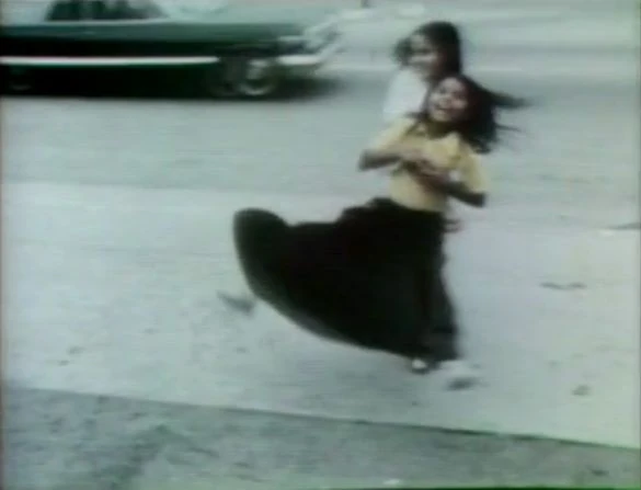 Film | A female voice notes when girls' skirts as either long or short (or both) as they walk and play. |