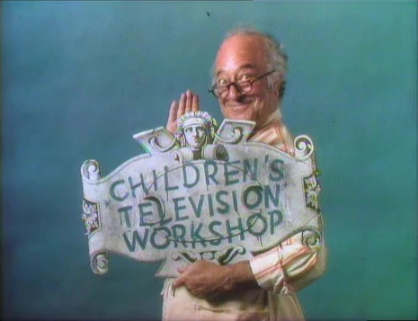 CLOSING SIGNS | Maria and Susan hold the Sesame Street sign, and Mr. Hooper holds the Children's Television Workshop sign. |