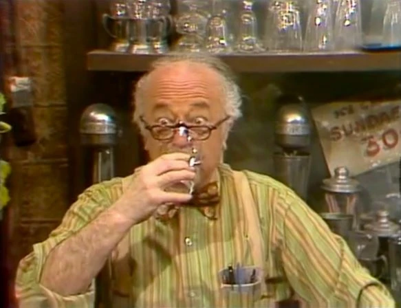 SCENE 1 | At Hooper's Store, Mr. Hooper has Big Bird guess what we'll be learning about today using a glass. When he fills it with water, it's full, but when he drinks it, it's empty. It takes a while for Big Bird to grasp the concept, forcing Mr. Hooper to slug glass after glass until he's the one that's full. |