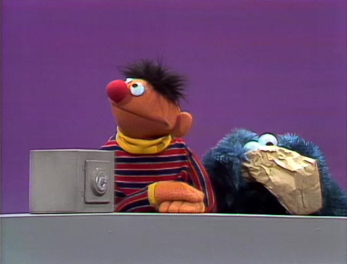 Muppets | Cookie Monster and Ernie: Cookie Safe — Ernie has a bag of cookies, and locks them in a safe to protect them from Cookie Monster. (First: Episode 0581) |