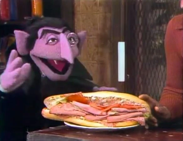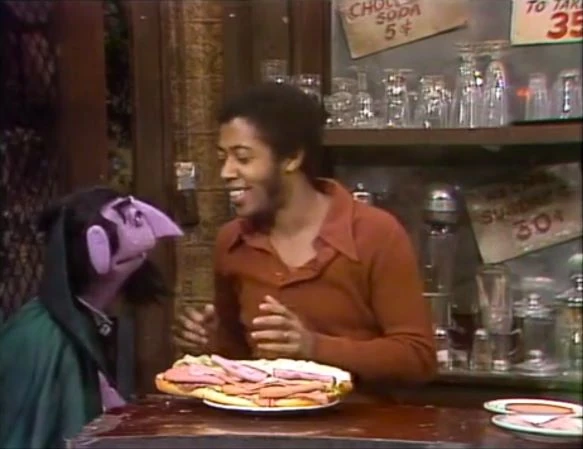 SCENE 3 | At Hooper's Store, David gets off the phone with someone who just canceled their sandwich order. The Count eyes the half-made sandwich, and David gets so cheered up with the unwasted food that he offers to add more ingredients to make it even more delicious for him. Once the sandwich is complete, the Count... counts the one sandwich and promptly leaves. |