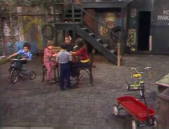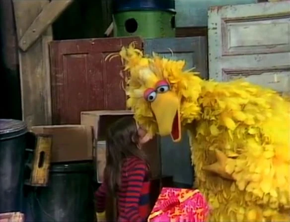SCENE 2 | Maria gives David one of her super-duper mellow-yellow backrubs after he finishes lugging some heavy crates for the trash. Oscar is disgusted by their interaction; he hates being touched, and wonders why anybody would do such a thing. David tells him to imagine what would happen if nobody touched anyone else. In a fantasy cutaway, Big Bird gives a present to a kid, who almost thanks him with a kiss. In the yard, several kids almost play leapfrog. Maria and Gordon almost slap a high-five before just walking away. Oscar says he'd prefer things that way, but then tries to scratch an itch on his back with no success. Maria helps scratch Oscar's back (which even makes him purr), but Oscar yells for Maria to keep her mitts off of him. |