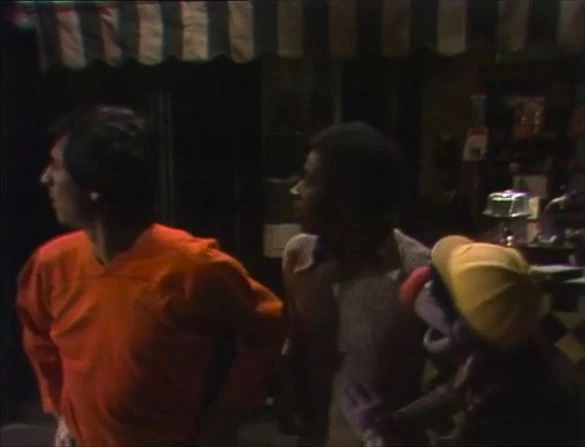 SCENE 1 | All is fine on Sesame Street in the evening; Luis is drilling something at the Fix-it Shop, and Maria returns home, saying hello to David who's enjoying some music on his radio at Hooper's Store. Suddenly, all the lights and power go out. Biff arrives representing the electric company (though specifying he doesn't work directly for them) and assures Luis and David that it's just a blackout that should be fixed in no time. David goes to make sure Maria is fine; she's already gotten a flashlight and keeps a much calmer head than David, whom she teases about his concern. The power returns moments later and Biff leaves, telling Luis and David about how he's not sure how digging a couple of holes could've helped get the electricity working again. |