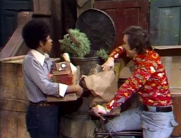 SCENE 3 | Big Bird shows Bob what he just bought from a salesman: a milk bottle. But not just any milk bottle … it’s a bottle of sunshine! Bob explains that sunshine itself can’t be put into a bottle, so Big Bird goes to get his money back. Bob tells Luis and a kid about the situation when Big Bird comes back with something else he traded for the bottle of sunshine: a jar of wind. |