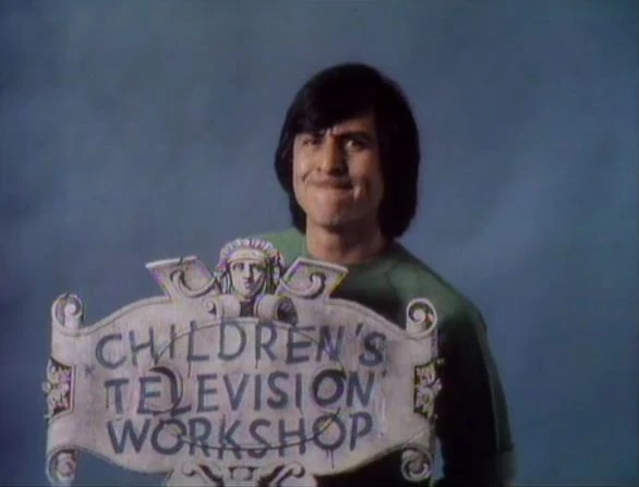 CLOSING SIGNS | Susan holds the Sesame Street sign, and Luis holds the Children's Television Workshop sign. |