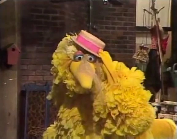 SCENE 3 | With a fanfare introduction, Big Bird presents a series of demonstrations using his straw hat. First, he pours birdseed in the hat, then puts the hat on a box. After showing that the box is under the hat, Big Bird finishes by putting the hat on, spilling birdseed all over himself. |