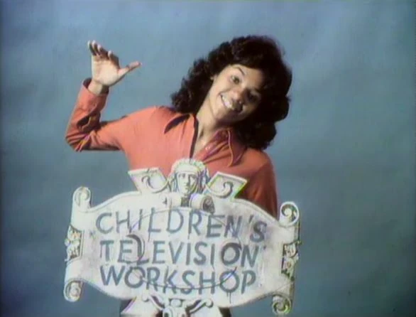 CLOSING SIGNS | Luis holds the Sesame Street sign, and Maria holds the Children's Television Workshop sign. |