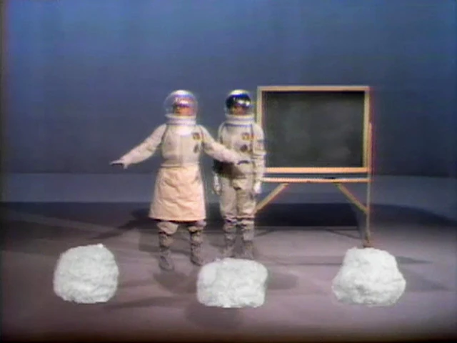 Cast | Mr. Hooper and Susan play astronauts on a mission on the Moon. Susan attempts to tally up the three moon rocks, which float off into space one by one (followed by her superior). (First: Episode 0524) |