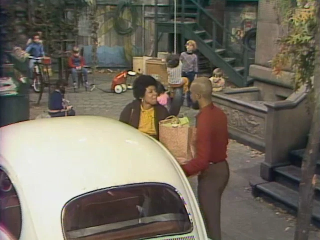SCENE 3 | Gordon pulls up to 123 Sesame Street in his Volkswagen Beetle where he's greeted by Susan. He says he's got a headache, so Susan tells the kids to go play at Big Bird's nest so he can take a nap. |