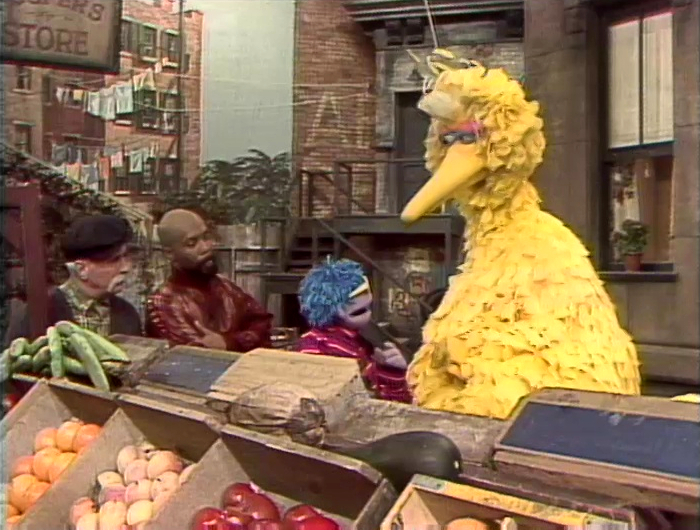 SCENE 4 | Maria stops Mr. Mac to purchase some fruit as Big Bird announces the sponsors. |