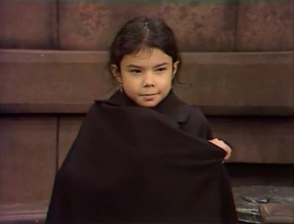Cast | Two kids cooperate on putting on smocks for painting. (First: Episode 0284) |