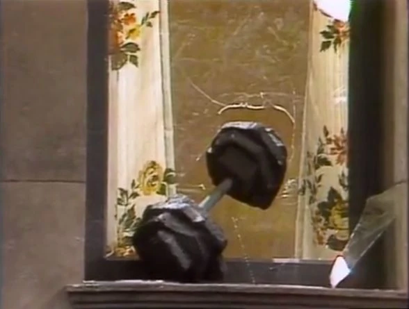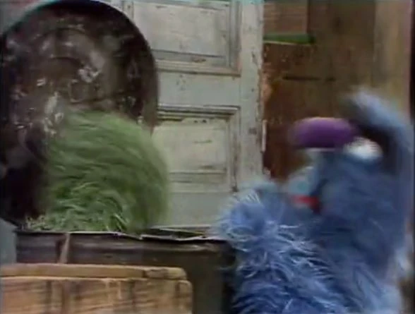 SCENE 4 | Herry goes to Oscar's trash can after helping Luis put in a new window, but learns that Oscar has taken away the barbell he set aside while assisting Luis. He politely asks Oscar to give it back, but Oscar claims finders keepers and refuses to return it, telling him to get something else to lift for his bodybuilding program. Herry agrees: he grabs Oscar's trash can and begins to jostle it around, with Oscar inside! |