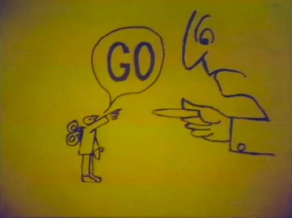 Cartoon | A man winds up a toy person and orders it to GO, until the toy snaps back and makes him GO. (First: Episode 0349) |