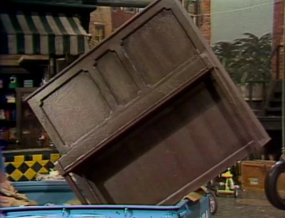 Biff comes back, saying he couldn't get a hold of anybody else from work to help. He sees that the piano is loaded on the truck, and wonders how it happened. As Sully stands slack-jawed, Biff jokingly assumes that a big blue monster came and helped Sully load it on. Sully nods in agreement, but Biff suggests he tell his tall tale to the guys at the lodge. |