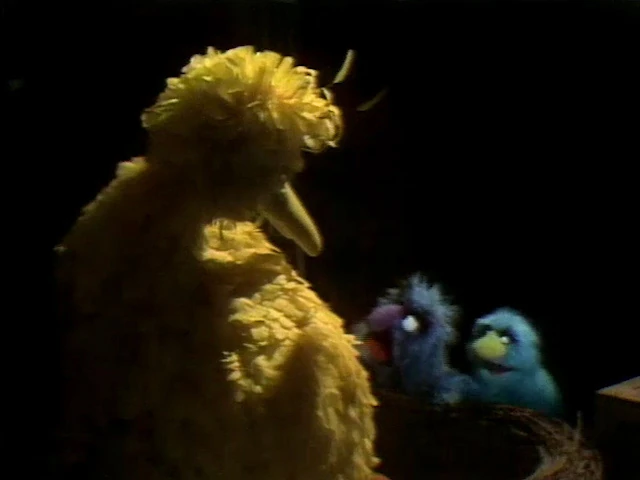 SCENE 5 | Big Bird settles down for bedtime, but becomes frightened when he hears some of the sounds in the dark. He begins to panic when he notices Herry Monster and his friend Maurice nearby, wanting to sleep with Big Bird in his nest. After all, the monsters aren't afraid to sleep in the dark: they're terrified! |