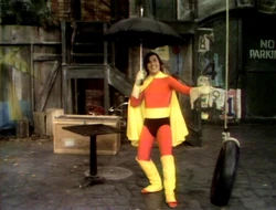 Cast | Captain Under-Wonder (Luis) shows how he goes under an umbrella, a table and the tire swing (the latter by shrinking himself down). (First: Episode 0508) |