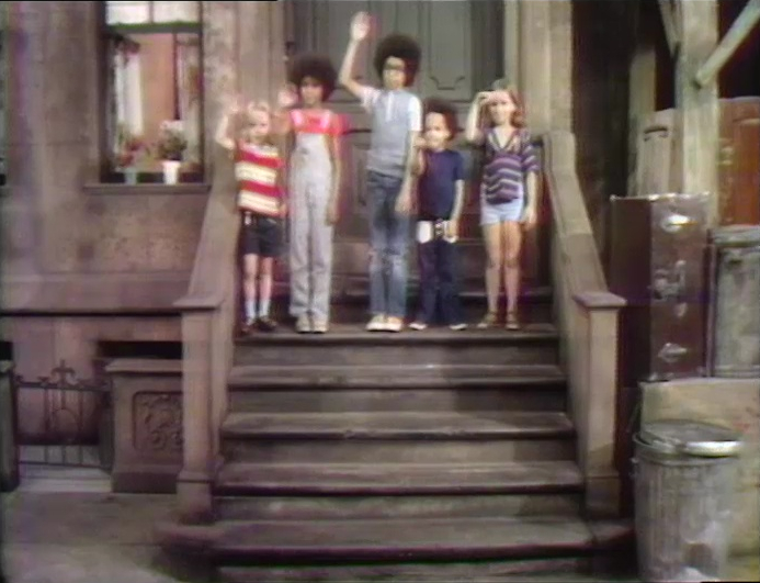 Insert | Five kids appear on the stoop, rising up one step each time a new kid is added. They are then counted backwards. (First: Episode 0417) |