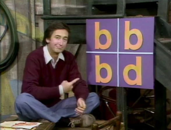 SCENE 4 | Bob plays a βOne of These Thingsβ game in the yard with three bβs and a d. He then traces the shape of the letters to show the difference. |