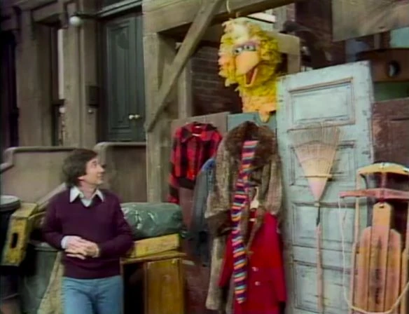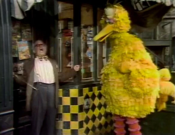 SCENE 3 | Mr. Hooper angrily searches for his key that will open his store, but can't seem to find the right one. He shoos Big Bird away when he pokes around, yelling at him to scram. Big Bird then walks toward 123 Sesame Street and decides not to talk, not wanting to risk making someone else upset. Gordon and Susan greet him, but when he doesnβt reply back they scold Big Bird for being rude. Big Bird tells the viewer that sometimes grown-ups are mad for no reason, finding them hard to predict. Bob comes by in a good mood, inviting Big Bird for a walk in the park; Big Bird is happy again and starts to tell Bob about the weird day he's having so far. |