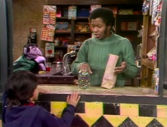 SCENE 1 | At Hooper's Store, Debo asks David for 100 marbles, which heβll pick up later. David would rather have more time to study than count the marbles, and asks the Count to count them instead. Unfortunately the Count is taking the day off today and saving his energy so he can visit the country tomorrow to count blades of grass (and maybe a few grasshoppers). David tries counting the marbles multiple times but loses track whenever the Count tries to bring his attention to something (as well as Oscar barging in to ask about leftover trash). David is unable to get the right amount counted when Debo returns, but the Count points out that there is no need to do so anyway: the label on the jar lid already has the quantity of marbles listed, so thereβs no need to count them. |