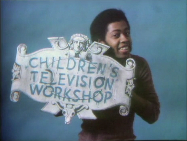 CLOSING SIGNS | Luis, Mr. Hooper, and a kid hold the Sesame Street sign, and David holds the Children's Television Workshop sign. |