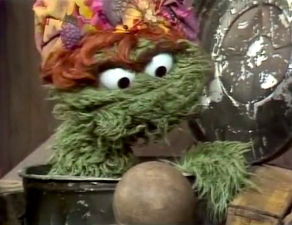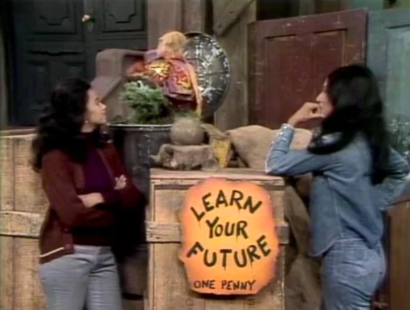 SCENE 2 | Maria and Buffy reminisce about their trip to New Mexico when they notice a sign near Oscar's trash can advertising a fortune telling service. "Madame Oscar" arises and offers to tell Buffy's future for one penny. Buffy gives him a penny (then eventually another and another) as Oscar looks into his dingy rubber ball, and tells Buffy she’s going to lose something valuable... three pennies. He slinks back into his can as Maria takes the ball to give to the kids to play with. |