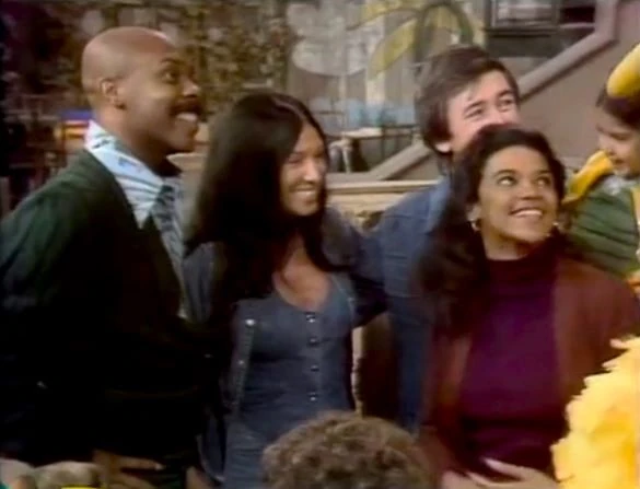 SCENE 1 | Big Bird excitedly calls everybody over for a surprise he has for them. Gordon, Bob, Maria and the kids all try to guess from the clues Big Bird gives: it makes music, it travels a lot, and is now standing behind them. The surprise is… a visit from Buffy! Everyone gathers around and hugs her. |