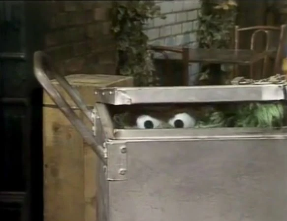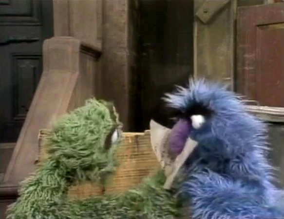 SCENE 6 | Oscar challenges Herry Monster to a game of hide-and-seek, claiming to be the game's champion on Sesame Street. To prove it, he hands Herry a sheet of clues where he’ll be hiding, believing that not even that will guarantee a win for Herry. As Herry closes his eyes and counts, Oscar sneaks away and hides in the Hooper's Store delivery cart in the yard. |