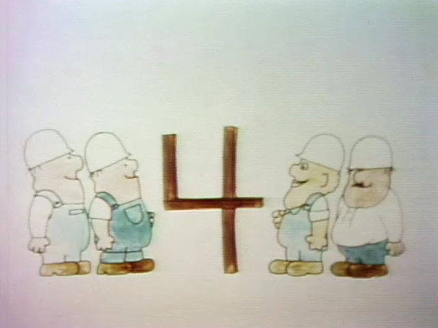Cartoon | Four construction workers build a number 4. (First: Episode 0507) |