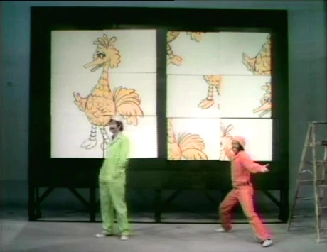 Cast | Bob puts up a drawing of Big Bird on a billboard. His partner, David, has trouble putting up a duplicate in the same manner. (First: Episode 0486) |