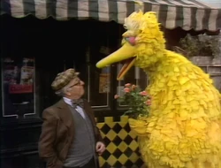 SCENE 5 | Big Bird enjoys the roses he just bought, but he encounters Mr. Hooper closing the store because his sister is in the hospital again. He gives Mr. Hooper a couple of flowers out of sympathy, then he gives several to Gordon who feels angry after having an argument with Susan. He gives the last one to Todd as Bob bandages up his scraped elbow. Even though he doesn’t have any more flowers, Big Bird finds that he feels happier than when he bought them. |