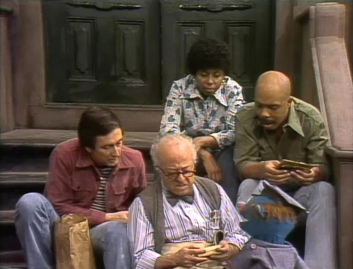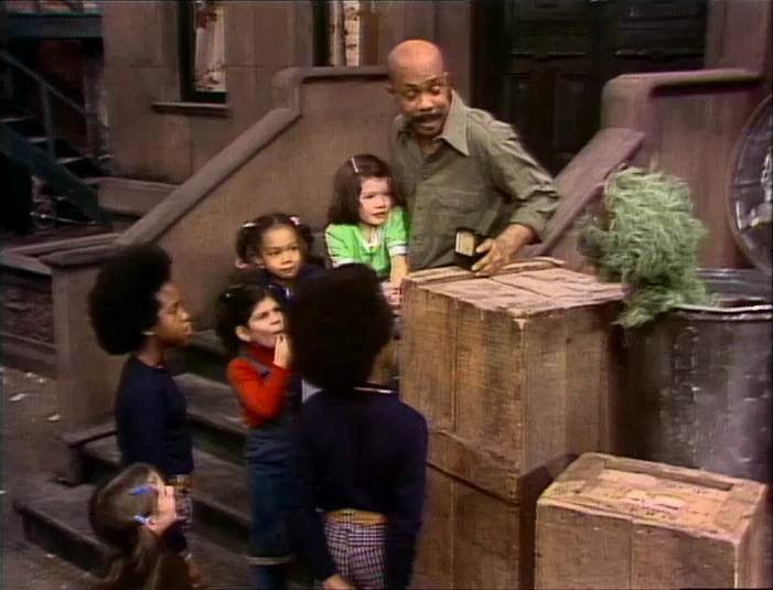 SCENE 3 | Bob, Mr. Hooper, Susan, and Gordon encounter the substitute mailman who’s delivering only “G” mail today because he loves the alphabet, and has decided that today is his “G” day. He delivers to Gordon, but Susan interjects and says her middle name is “Gloria,” so she can get her mail today too. The mailman then delivers to Oscar, who’s a Grouch, then to Mr. Hooper, who’s a grocer. Bob shows the mailman what he has in his bag: some glue, a glass, and a grapefruit, so the mailman delivers to him as well. |