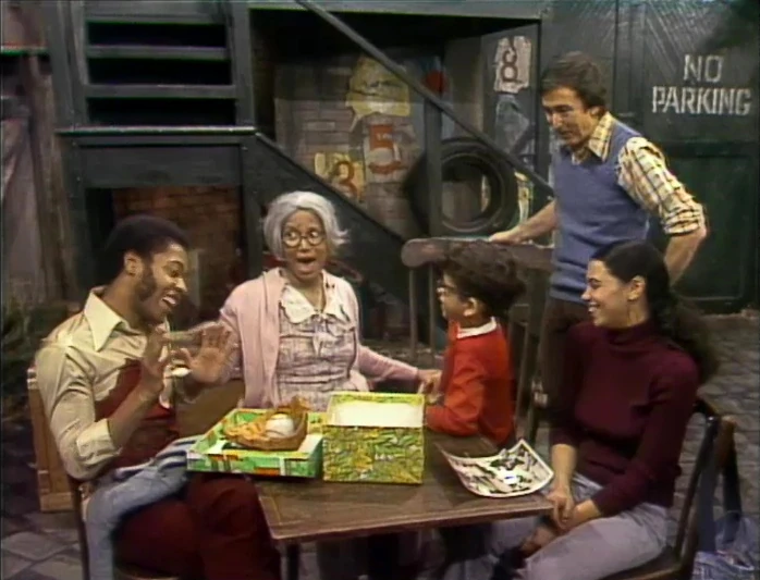 SCENE 6 | Everyone walks Grandma back to the bus stop, as she claims Maria and Big Bird are now her honorary grandchildren. She promises to come back and visit again, giving them each a parting kiss before she boards the bus home (a bittersweet moment for David). Bob announces the sponsors. |