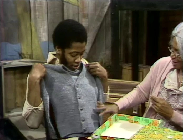 SCENE 1 | David cleans up Hooper's Store in preparation for a visit from his grandmother, whom he hasn't seen in a long, long time. He chides Maria and Big Bird when they come close to touching anything in the store as he prepares for her arrival. Big Bird sees how busy David is and offers to meet his grandmother at the bus stop, but first needs to know what she looks like. David tells him that she's a beautiful, older woman with gray hair, a suitcase, and looking for her grandson. |