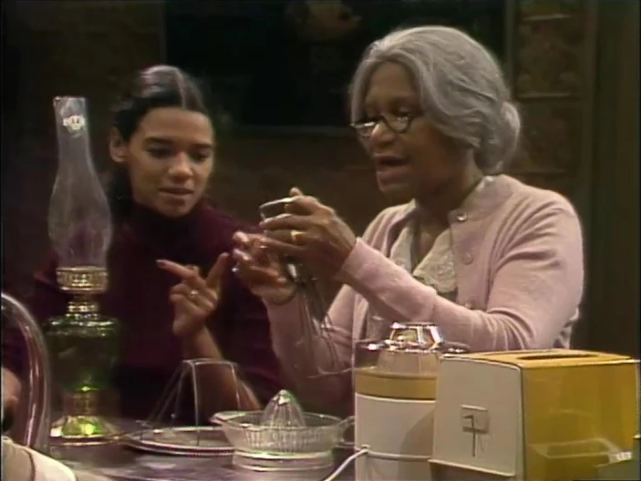 SCENE 5 | At night, Grandma raids the back room of the store and finds various old-fashioned items she recalls using back in her day before there were so many electric appliances. She shows David and Maria a hand mixer, a toast maker, a juicer, and a kerosene lamp. David flaunts the modern equivalents of these and demonstrates them, causing a fuse to blow in the store. Grandma lights the lamp, proving they can still be useful. |